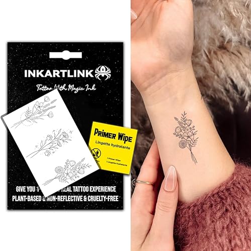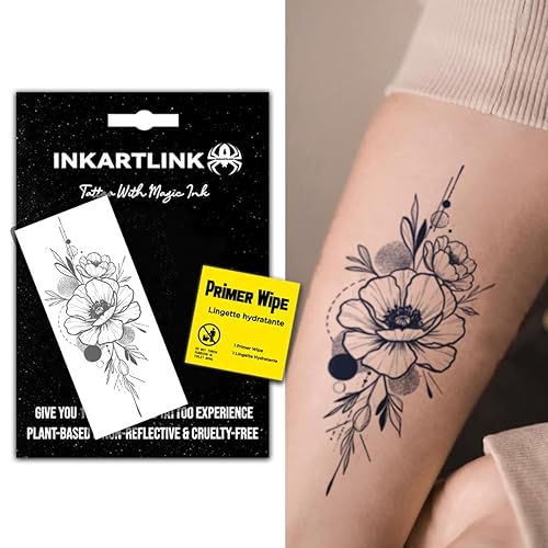 INKARTLINK Semi Permanent Tattoo, creative arm party flower tattoo, exquisite realistic design, interesting tattoo experience, cruelty-free, non-reflective, waterproof (Flower 19)(A Bouquet Of Flowers)