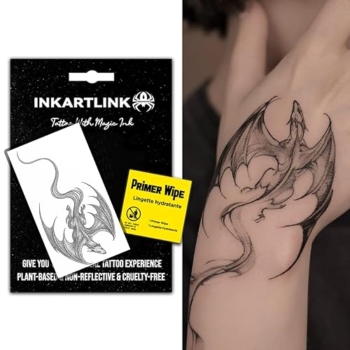INKARTLINK Semi-Permanent Tattoos, creative men's party animal dragon tattoo, exquisite and realistic design, fun tattoo experience, cruelty-free, non-reflective, waterproof (Western Dragon 3)(Western dragon tattoo combination)