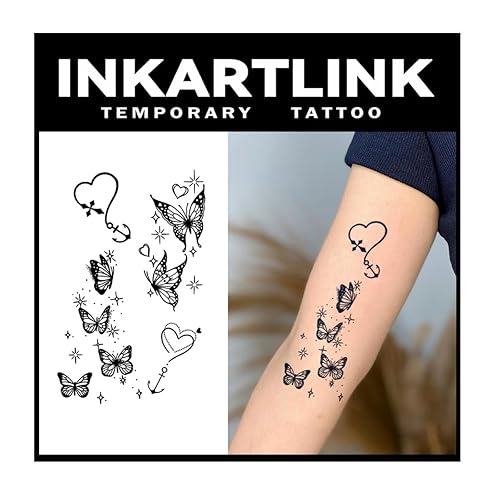 INKARTLINK Tattoo Tech, 2 Sheets Large Semi Permanent Tattoo, Temporary Tattoos, Last 1-2 Weeks, Waterproof, Realistic Look, No Adhesive, No Reflection (butterfly)319(Large butterfly 13)