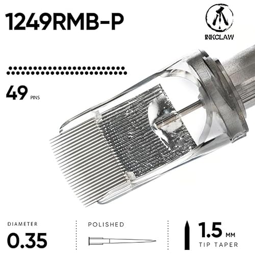 Bold 1249RM Round Magnum – Maximum Coverage: The Inkclaw 1249RM Bold Round Magnum cartridge is designed for heavy color packing, soft-edge shading, and large-area fills. Its curved magnum (soft edge) layout ensures smooth blends and natural transitions on demanding tattoo designs.