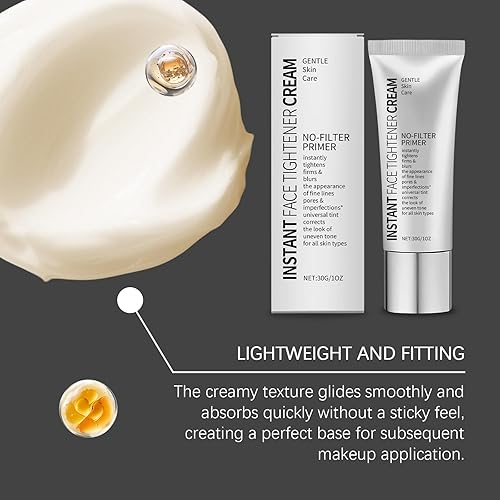 Instant Firming No-Filter Face Primer & Under Eye Tightener Cream - Blurs Fine Lines/Wrinkles, Evens Skin Tone, Hydrating with Hyaluronic Acid & Vitamin E, Pre-Makeup Base for Flawless Look