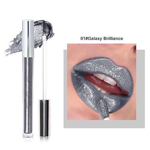 Intense Color Liquid Lipstick 1PC - Waterproof Glitter Lip Gloss High Pigment Long Wearing Non Smudge Lip Makeup Purple One Size(Grey,One Size)