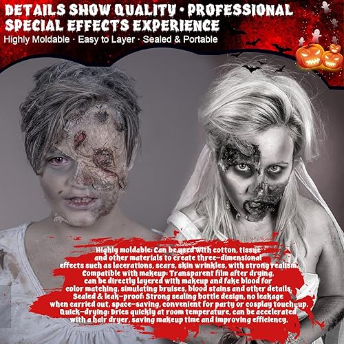 Multiple Scene Usage: Used for Securing special FX appliances, Sealing wax creations, Crafting realistic textures. Latex makeup special effects perfect for monster,zombie,cosplay,prosthetics makeup,costume makeup,fake scars makeup.