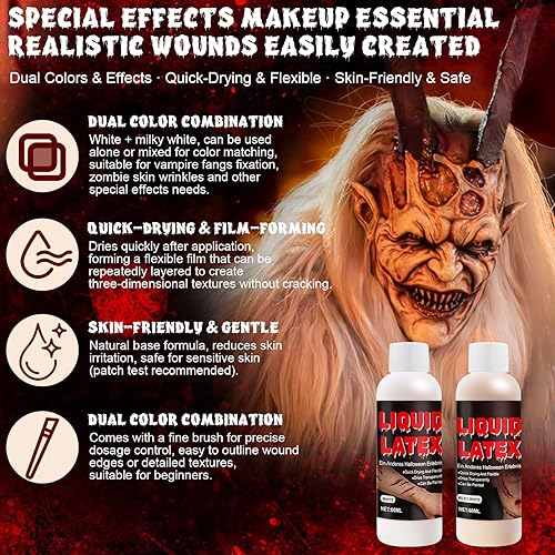 Comment on "JAOJAO Liquid Latex Makeup, Liquid Latex for Face, Special Effects Halloween Sfx Makeup for Halloween Zombie Costumes Gorey Effects (60ml White + 60ml Flesh Color)"