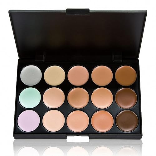 JewelryWe 15 Colors Makeup Cosmetic Contour Concealer Palette Kit with Blender Sponge+Make Up Oval Toothbrush Brush