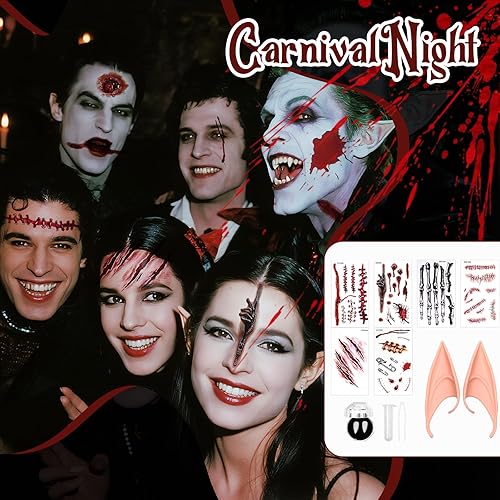 ALL-IN-ONE HALLOWEEN COSPLAY SET: Includes vampire fangs, elf ears, and a variety of bloody scar tattoo stickers—one kit for multiple spooky, fantasy, and horror looks