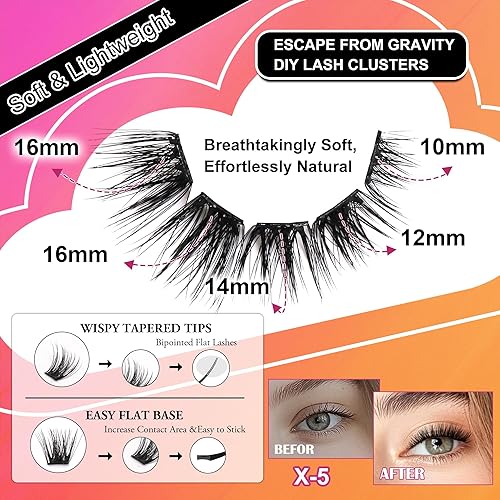 Beginner-Friendly: Pre glued eyelashes clusters perfect for quick makeup needs like travel, work, or dates. Press on lashes easy to apply in under a minute, glueless lashes making it ideal for beginners and busy lifestyles
