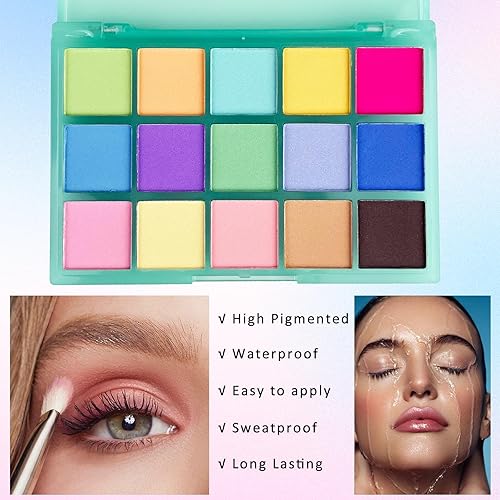 K'APEINE 36 Colors Eyeshadow Palette, Colorful Eyeshadows Palette Neon Shimmer Matte Glitter Eye Shadow High Pigmented Shadow Set Long Lasting Eye Makeup for Women(15colors)