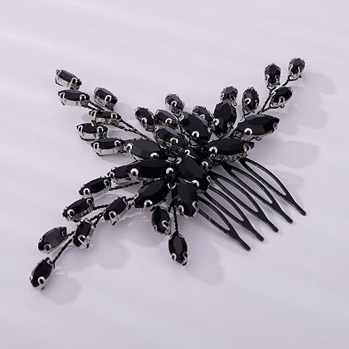 Kercisbeauty Black Rhinestones Beads Hair Comb Side Hair Pieces for Wedding Brides Bridesmaid Women Handmade Jewelry