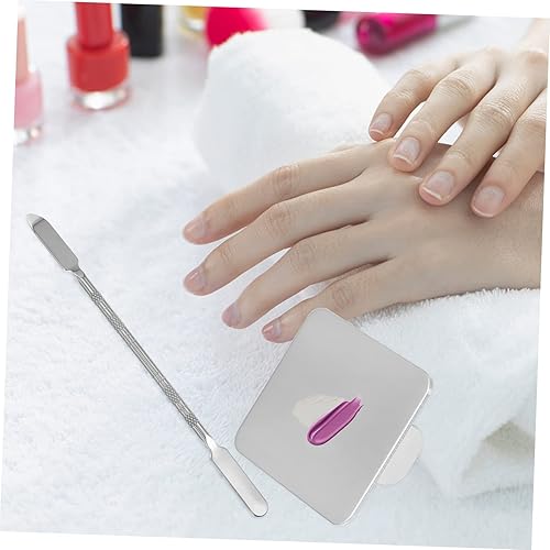 KICHOUSE 1set Portable Manicure Makeup Plate Cosmetic Mixing Tray Palette Spatula Makeup Artist Tool Set