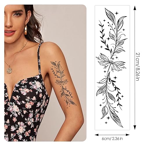 Realistic Designs: Includes 10 sheets of intricately detailed Black flower tattoos, featuring all kinds of floral designs, butterflies, moon, star and hearts, super realistic. Each sheet measures 8.26*2.36inch, mix and match designs to create unique looks for any occasion