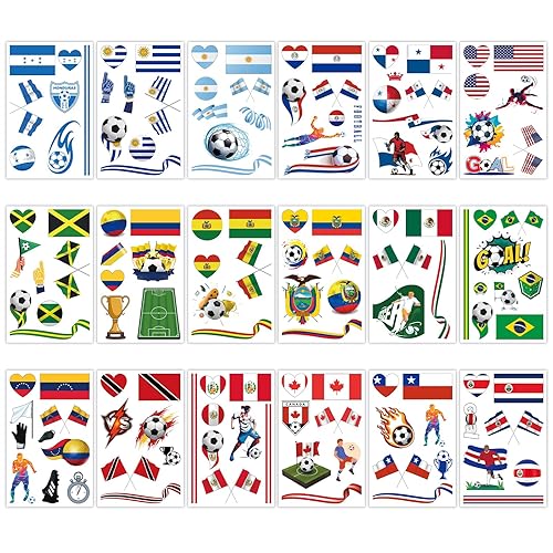 Konsait 18 Sheets Soccer Tattoos, Soccer Games National Themed Tattoos, Soccer Games Party Favors, Event Makeup & Stocking Fillers