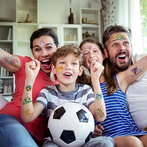 【 Safe and friendly material 】 We use environmentally friendly and non-toxic material to make the sports tattoos for kids, suitable for children over 3 years old, so you can rest assured. The water-resistant design ensures that kids will enjoy showing off their tattoos during play, long-lasting and durable. Everyone can have glitter soccer ball tattoo stickers.