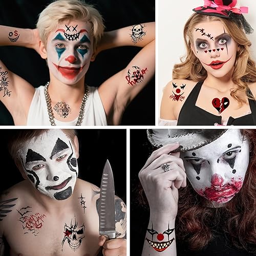 Long Lasting : The face makeup Halloween clown tattoos look realistic and are durable, suitable for application on any body part, including the face, hands, neck, wrists, waist, and legs. They will make you the center of attention at any party, allowing you to showcase your unique personality