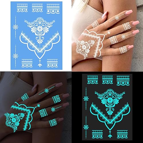 Konsait 8 Sheets Glow in the Dark Tattoos for Women Girls Luminous Temporary Hand Tattoos for Women Black Light Tattoo Glow in the Dark Makeup Fake Tattoo