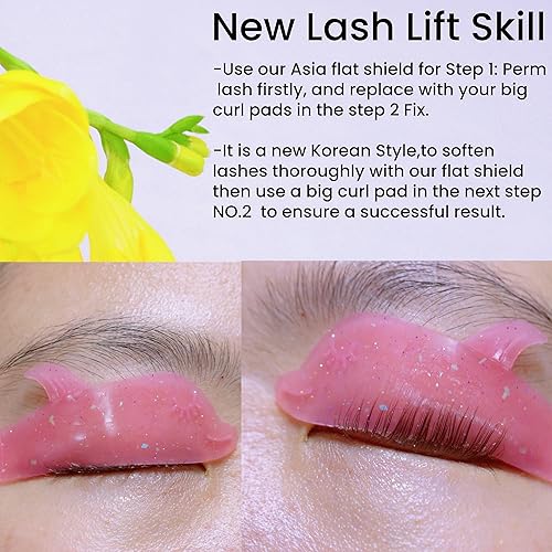 Korean New Lash Lift Skill: You need to replace the flat shield in the step 2 Fix ( Set), the flat shield is for perming lashes only, and you need to replace it with a bigger silicone lash lift pad for forming a beautiful lift result.