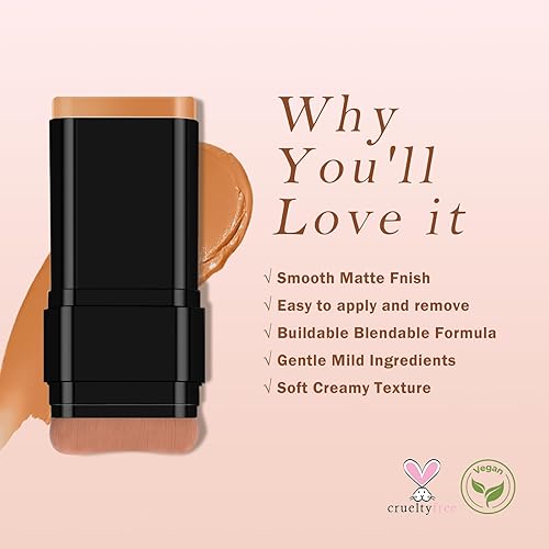 【Long-Lasting Makeup】Experience a smudge-proof finish that lasts all day. Our concealer foundation stick can quick dry and form a film. And it Avoids stickiness and pilling. The formula sets to a natural skin-like finish, ensuring your makeup looks freshly.