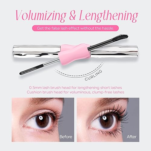 【2-In-1 Lash Design】Experience the ultimate lash transformation with our innovative dual-ended mascara. One end features a precision steel comb wand that expertly separates and defines each lash for a stunning, clump-free, and perfectly lengthened look. The other end boasts a unique air-cushion brush designed to load lashes with intense volume, coating them from root to tip for a dramatic, wide-eyed effect. This powerful combination delivers salon-quality results in one convenient product.