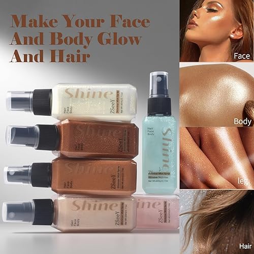 Multi functions: The highlighter setting spray not only can be used for face, but also used for body and hair. The area you apply will turn shiny and metallic.