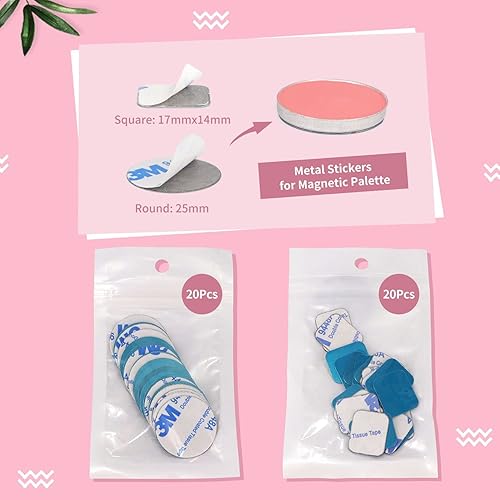 DIY Magnetic Makeup Palette: Customize your favorite blush, eyeshadow, lipstick, eyebrow powder, or other cosmetics by placing them into this empty magnetic palette. Ensure your cosmetics are in metal iron pans to be compatible with this magnetic makeup palette. If not, utilize the included 40adhesive metal stickers to make them compatible.