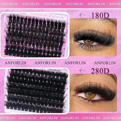 【Vegan Friendly】: Anforlin Lash clusters are constructed of upgraded plant fibers and whisper-thin 0.05 mm bands, these wispy lash clusters are 50% lighter and softer than the usual. Gather them together and you get that true,feathery lash feel-like naturally long lashes, only fuller and more dramatic, adding a captivating depth to your gaze.