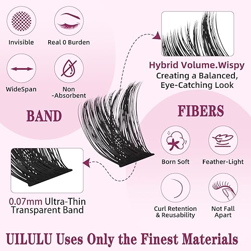 High-Quality & Value Choice - Made with premium fibers for durability and comfort. Uilulu fake lashes clusters provide multiple lash lengths and styles, offering a cost-effective option compared with salon extensions