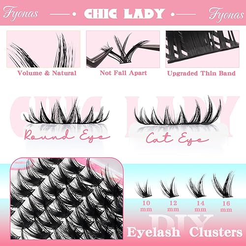 High Quality: Our lash clusters are made of imported fibers, long-lasting shape, skin-friendly material, not easy to fall apart, upgraded thin band, wearing a natural effect, lightweight design reduces the burden on the eyes, all-day outing without stress!