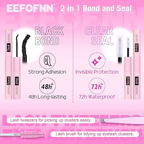 DIY Eyelash Extension Kit For Beginners: With wider band, only 4-6 pcs wispy cluster lashes per eye can achieve cat eye lashes look. Lash bond and seal waterproof, tweezers and lash brush, all the tools for lash extension are in easy-to-use lash kit