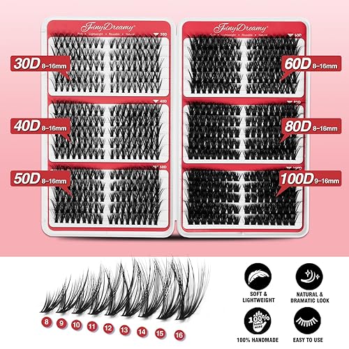 Pre-map Lashes Make it Easy to Create Wispy and Cat-eye Makeup Looks: Pre-map Lash clusters are pre-arranged by curl (30D to 100D) and length (8 - 16mm). Just pick and apply to create gradient, wispy or dramatic cat - eye effects, cutting down trial - and - error time for beginners & pros.530 PCS Lash clusters featuring a mix of 30d, 40d, 50d, 60d, 80d, and 100d volumes,creating a unique cat-eye lash style!This lash set features a C curl, which fits the eye shape more closely to create a captivating eye makeup effect.