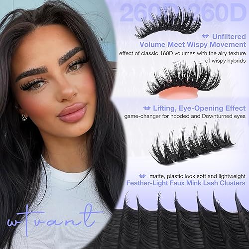 Bold Look, Zero Weight: Get the high-impact volume of 260D cluster eyelash extensions with a feather-light feel! Our upgraded material and durable build massive density that's surprisingly weightless;These cluster eyelash extensions are fuller than the rest, but so much lighter