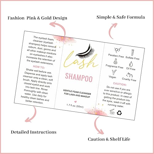 Lash Extension Aftercare Instructions Cards Lash Shampoo Label Stickers for Bottle Bath Wash Labels for Foam Pump Dispenser