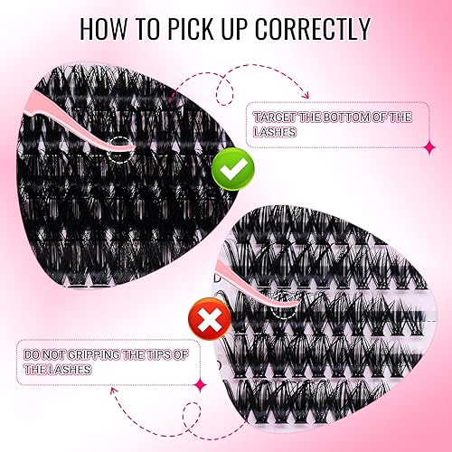 Cluster Eyelash Extensions Kit: Includes cluster lashes(30D 50D 60D 80D+Bottom Lashes+Spike Lashes), a lash bond and seal, a lash Tweezers, a lash remover. The wispy eyelash clusters are super thin sharp tips, thin band, softness and durability,similar in thickness to real eyelashes.