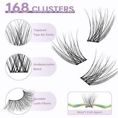 High-Quality Faux Mink Individual Lashes: Crafted with high-quality faux mink fibers, these individual cluster lashes are soft, lightweight, and reusable, offering a natural wispy look that blends seamlessly with your real lashes. The waterproof bond & seal keeps them secure for up to 72 hours, and the lightweight design ensures all-day comfort. These lashes are ideal for creating both natural volume and dramatic looks.