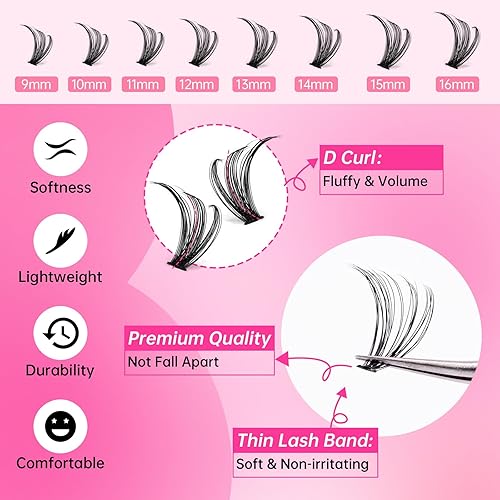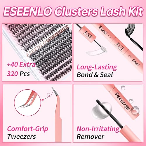 DIY Lash Clusters at Home: Our lash extension includes 320 Pcs (+40 Extra ) cluster lashes (40D+50D), Achieve the perfect extension look at home, saving time and money.