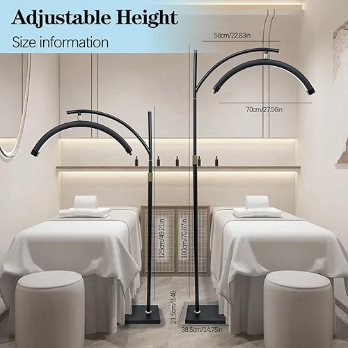 Lash Light Esthetician Lamp for Lash Extensions, LED Floor Half Moon Ring Facial Light with Adjustable Brightness & Height, Pallets & Phone Holder. for Eyelash Tech, Tattoo Artists, Nail Techs.Black(Black)
