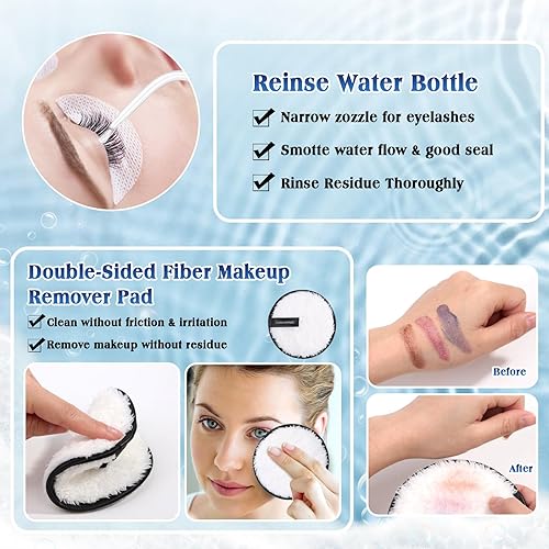 Assisted Washing Thoroughly Tools: The 150 ml rinse water bottle is designed with a slim nozzle to precisely and more easily clean lashes with water flow that is controlled by squeezing. You can use it to store cleaning solutions, makeup removers, or water. With our spare shampoo brushes to clean out lash oil, dirt, and makeup residue and the great water absorption makeup remover pad to wipe off the foam residue, you could clean lashes thoroughly and neatly by combing with our mascara brushes.
