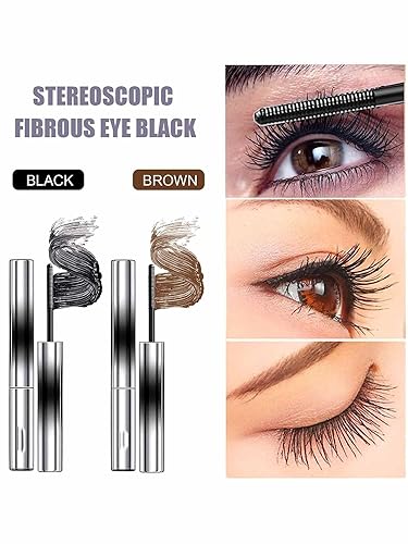 Lashique Metal Wand Mascara, 3D Curling Eyelash Iron Mascaras, Long Last Waterproof, Long-Lasting and Smudge-Free (Brown)(2pcs-Mix)
