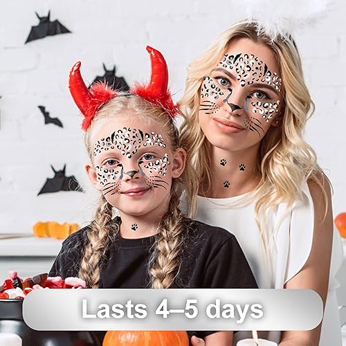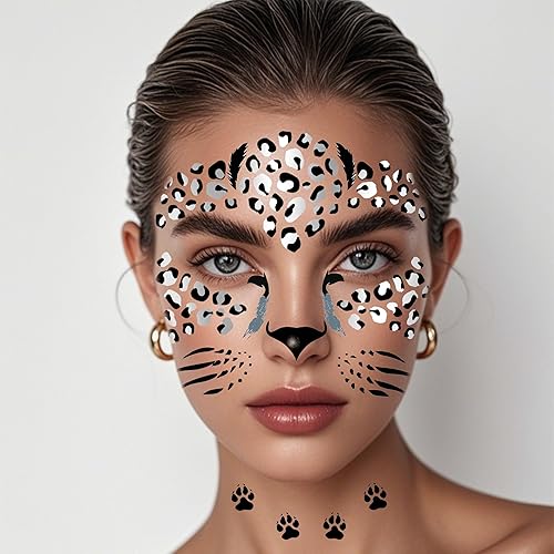 [Unique Leopard Look] – The leopard face tattoo with a shiny effect creates a sexy and eye-catching style. Combined with the leopard tattoos, it creates a unique look that is perfect as a carnival or Halloween face tattoo and is sure to attract attention.