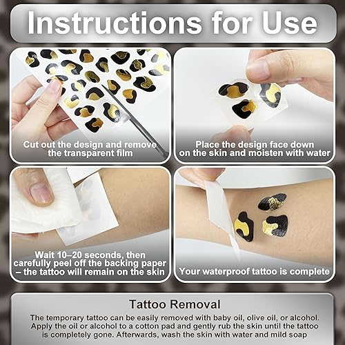 [Easy Application] – The leopard tattoo is quick and easy to apply: Cut out the design, peel off the backing, place the tattoo on your skin, moisten with water, and peel off the backing after a few seconds. A perfect Halloween tattoo or carnival face tattoo for an instant wow effect.