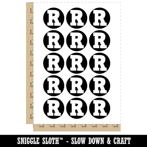 Letter R Uppercase Fun Bold Font Temporary Tattoo Water Resistant Fake Body Art Set Collection - 15 2" Tattoos (1 Sheet)(15 2-Inch Tattoos (1 Sheet))