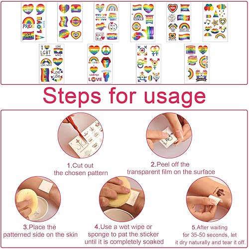 Application:Pride Day themed tattoos can be attached to the face, hands, legs, any body part exposed to the outside of clothing.Suitable for different occasion of party, school, holiday, photograph, nightclub, beach, wedding,sleepovers, music festivals, anywhere really!