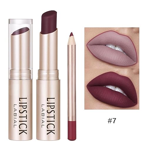Linjinx Matte Lipstick and Lip Liner Set 2 in 1 Waterproof Lip Pen Non Transfer Makeup for Women Type 7 One Size(Type 7,One Size)
