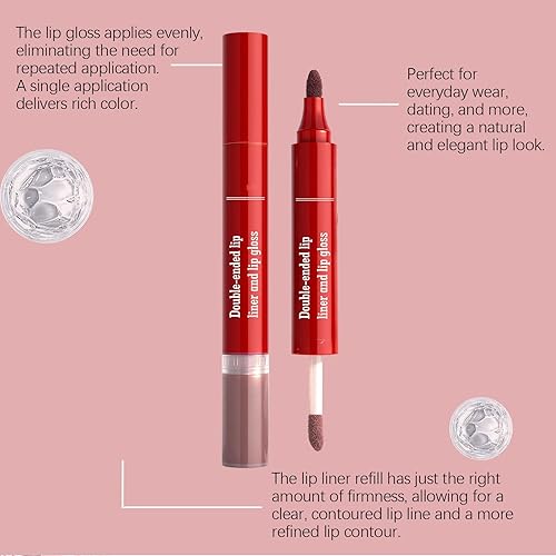 【Double-Ended All-in-One Design】: Features a convenient double-ended design with a lip liner on one end and a plumping lip gloss on the other. This 2-in-1 combo eliminates the need for multiple products, making your lip routine effortless and portable.