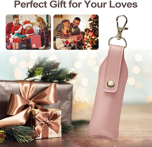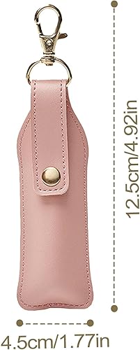 Lipstick Holder keychainn - PU Leather Lipstick Lip Cream Pouch keyringg | Small Lip Balm Holder chapstickk Travel Storage(Pink)