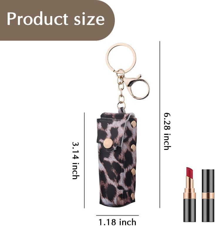 Leopard Lip Gloss Keychain Holder: Chapstick holder key chain cute has a special lipstick storage space, you can easily store a lipstick, lip gloss organizer for purse bag design makes the lipstick less likely to be damaged or stained during carrying, and easier to touch up at any time, small pouch keychain for car key