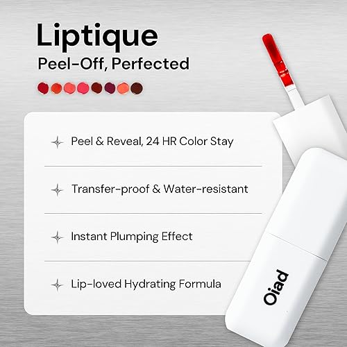 [Durable Lip Tint Stain] Oiad Liptique peel off lip tint features waterproof, kiss-proof, and smudge-free 24-hour pigmentation, so it does not smudge or transfer when eating, using a tumbler straw, or accidentally staining your clothes. This low-maintenance and long-lasting lip color ensures there's no need for constant reapplication