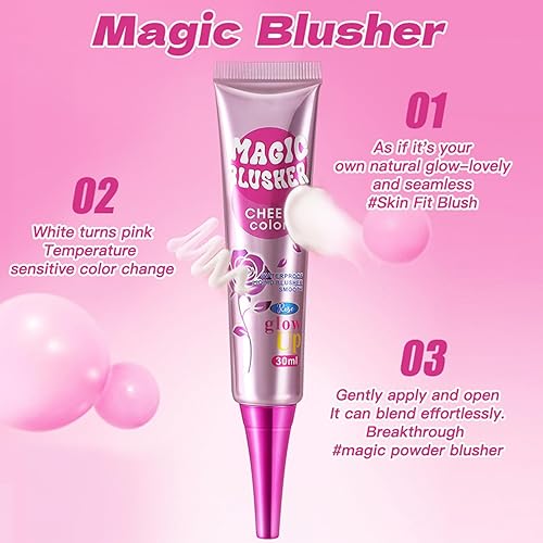 Skin Tone Adaptive Makeup: Discover the advantages of natural color-changing makeup with this radiant, sheer finish blush that uses heat activation to adapt perfectly to diverse skin tones, ensuring a refined and universally compatible appearance