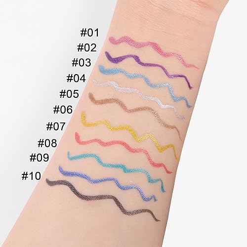 Colored Eyeliner: 10 different colors, silver, black, red, purple, brown, blue, etc. Choose the color according to the picture