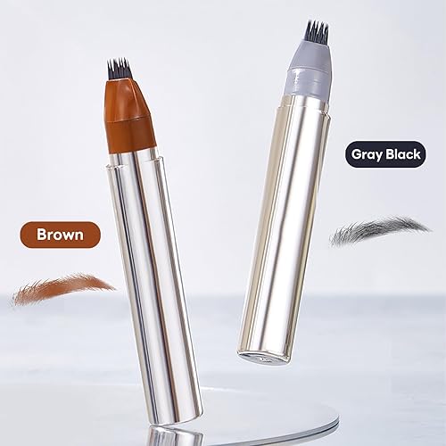 Liquid Microblading Eyebrow Pencil - 2 Pack, Gray Black & Brown, Natural Hair-Like Brows, Long Lasting & Quick Drying, Easy to Use, Excellent for Wild Brows and Hairline Filling
