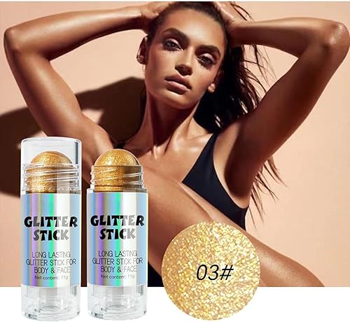 Long Lasting Glitter Stick for Body and Face, Holographic Shimmer Highlighter, 4 Colors Available, 11g, 3 Year Shelf Life (04)(03)